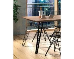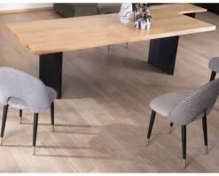Table De Repas Rectangulaire 220 Cm En Bois Massif Pieds Métal Plissé Noir « Audacio »