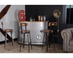 Meuble Bar Container Esprit Récup En Métal Bleu Nuit Et Bois « Crazy » Haut. 178cm