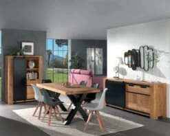 L’argentier « Cooper » a été conçu dans un esprit industriel : lignes épurées et usage pratique. Il est en pin massif brossé et possède une légère touche lasurée qui apporte du contraste entre la luminosité du bois et les finitions noires. Pas de poignée apparente sur ce meuble, pour un effet bloc marqué, le tiroir s’ouvre grâce à une encoche creusée et laquée sombre.