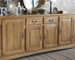 Cette longue enfilade de 226 cm de long est composée de 4 portes et de 2 tiroirs. Elle trouvera sa place dans une salle à manger ou une cuisine spacieuse. Vous pourrez y ranger votre vaisselle par exemple mais aussi des dossiers ou du linge de maison.