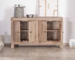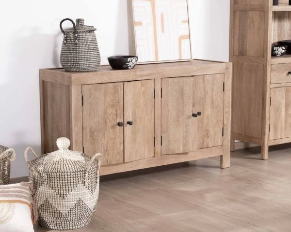 Le buffet en manguier massif à quatre portes « Maestro » est un équilibre savamment dosé entre fonctionnalité et esthétique intemporelle.