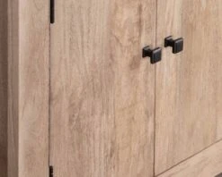 Long de 130 cm, sur 40 cm de profondeur et 76 cm de hauteur, ce bahut en bois possède des dimensions standards qui lui permettrons de se loger facilement dans une cuisine ou un séjour de taille moyenne. La structure intérieure est divisée en deux compartiments de 62 cm de largeur utile sans montant central, offrant une accessibilité aisée et un vaste volume de rangement. Chacun des caissons est scindé par une étagère amovible, créant des espaces modulables selon vos besoins, que ce soit pour abriter de la vaisselle, des trésors décoratifs ou divers objets qui peuplent le quotidien d’une vie de famille animée et chaleureuse.