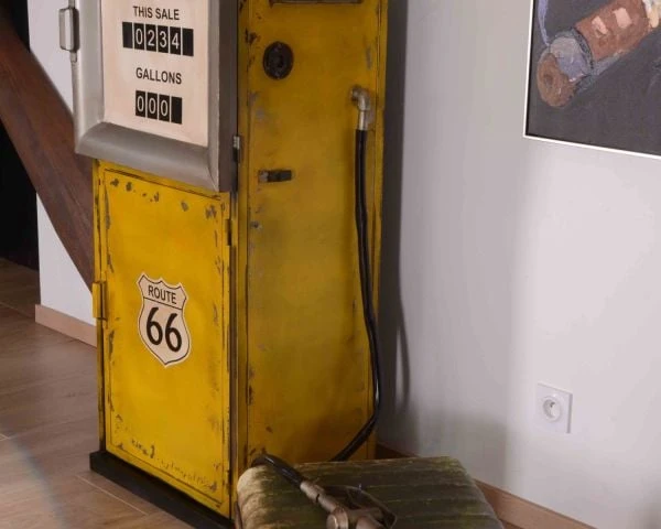 Fans de la Route 66 ce meuble jaune est fait pour vous ! Il apportera tout son caractère à votre séjour, votre salon ou votre coin apéro dans votre véranda. Les professionnels de l’hôtellerie et la restauration pourront aussi profiter de ses porte-verres et porte-bouteilles ultra pratiques. A coup sûr vos clients vont être fans de ce meuble à la personnalité unique et conçu à partir de métal recyclé. Après que vous les aurez servis ils pourront s’installer dans de confortables sièges de style vintage ou dans des fauteuils chesterfield en cuir.