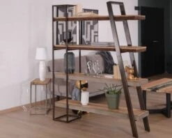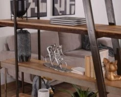 Cette grande étagère présente des dimensions utiles de L.150 x P.35 x H.180 cm. Elle est divisée en 4 niveaux, chacun profitant d’une solide base en bois massif soutenu par une structure en fer brut. D’ailleurs, avez-vous remarquez la finition laissée volontairement dans un style atelier ? Le rendu est incroyable, votre bibliothèque moderne est au top. Même si ses dimensions sont généreuses, cette étagère bois métal n’encombre pas visuellement vos murs ni votre espace de vie. Le design léger de sa composition fait le job !
