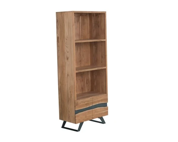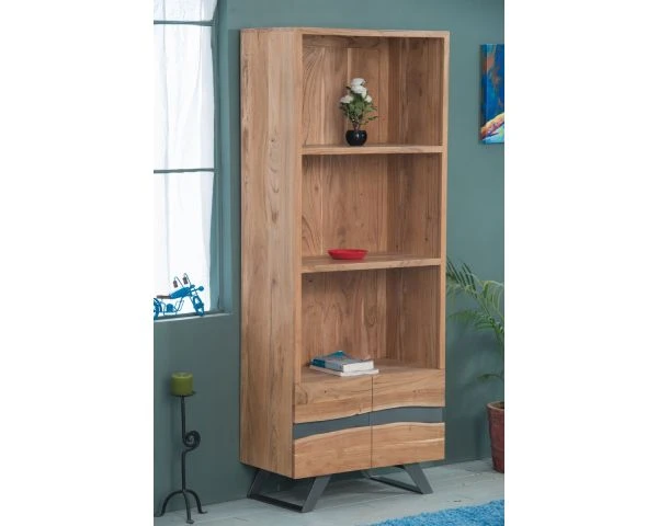 Les amateurs de livres seront séduits à coup sûr par cette belle bibliothèque en acacia naturel et aux pieds en métal de couleur fer. Disposant de trois espaces de rangement ouverts, elle vous permettra de mettre en valeur votre collection de BD ou vos plus beaux bibelots. Son dernier rangement inférieur, fermé par une double porte vous permettra d’organiser ce qui doit rester discret mais à portée de main.