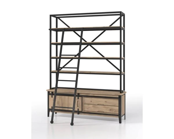 Installée devant un mur clair, cette bibliothèque en chêne ponctuée de fer graphite sera idéalement mis en lumière. Elle habillera l’espace de ses dimensions de L. 172 x P. 42 x H. 230,5 cm. Les sols foncés ou les revêtements muraux forts seront aussi adoucis par la teinte du bois et l’échelle avec roues sera la touche finale tout en élégance et en praticité.