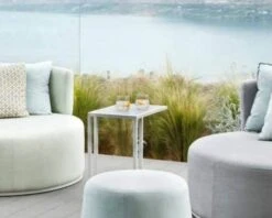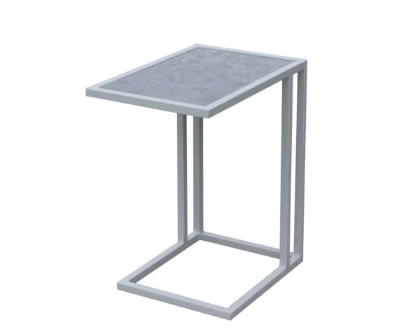 Ce bout de canapé tendance possède un remarquable plateau en céramique imitation marbre grisé et une structure en aluminium blanc. Ce matériau est parfait au jardin car léger et résistant à la pluie. Votre mobilier peut rester dehors lors d’intempéries sans problème.