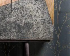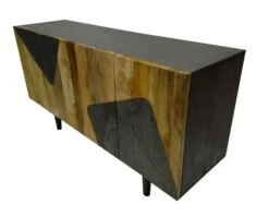 L’aspect minéral et l’allure du bois donnent du cachet et de l’âme à votre enfilade de séjour. Les veines du bois et ses riches teintes miel se marient à la perfection au placage en pierre. Notez que les irrégularités naturelles des matières utilisées font pleinement parties de l’aura du meuble.