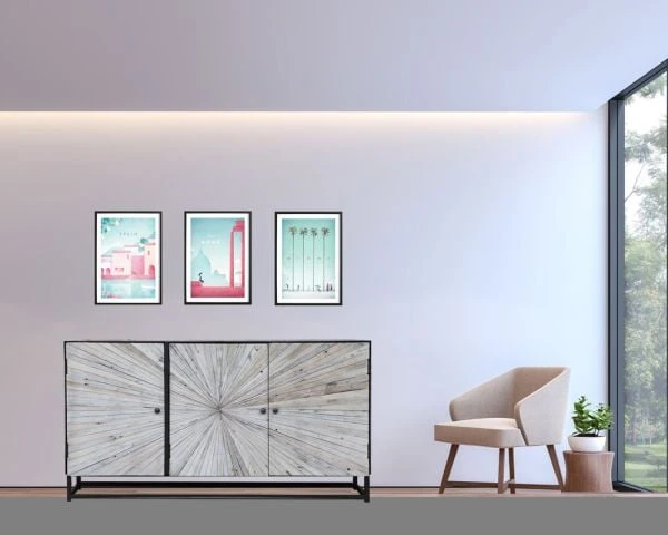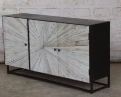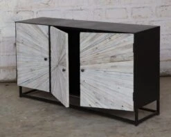 Ce buffet bas est composé de trois portes en bois blanchi ainsi que d’un cadre et de quatre pieds composés de métal. Celui-ci appartient à la collection Bristlecone. Il sera l’allié idéal pour mettre en valeur votre intérieur. Ainsi, grâce à ses dimensions de 80,5 cm de hauteur, 38 cm de largeur et de 150 cm de longueur, ce buffet bas s’adaptera parfaitement à toutes les pièces de votre intérieur. Vous pourrez ainsi le placer dans votre salon, votre salle à manger, votre chambre ou même dans votre entrée.