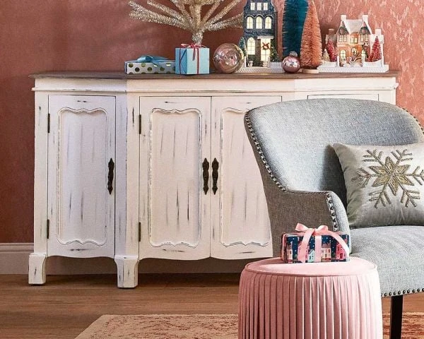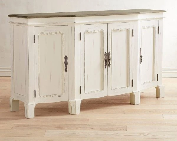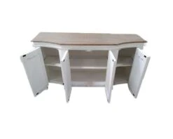 Le style rustique de ce meuble s’inspire des intérieurs des maisons de campagne coquets et délicatement ornementés, le plus souvent par des éléments naturels et des matières brutes. Ses charnières et poignées vieillies ainsi que sa patine blanc cassé lui apportent un charme chaleureux et romantique. Une douceur agréable inondera votre salle à manger grâce à cette enfilade en bois qui réfléchira la lumière naturelle et qui baignera la pièce dans une ambiance apaisée. Parfait dans un décor à dominance campagnard, ce buffet de salon se mariera également dans une décoration intérieure de style shabby qui se caractérise par l’utilisation de couleurs claires et de meubles à la fois confortables, sobres et élégants. Il trouvera aussi sa place dans un environnement plus moderne en ajoutant une note d’authenticité. Sur son plateau brut, n’hésitez pas à poser vos plus beaux objets de décoration ou un beau vase rempli de fleurs sauvages pour joindre l’utile à l’agréable !