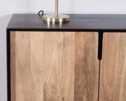 L’enfilade en manguier massif noir et sablé « Perle » combine harmonieusement la chaleur et le charme du bois massif avec le dynamisme d’une esthétique contemporaine.