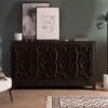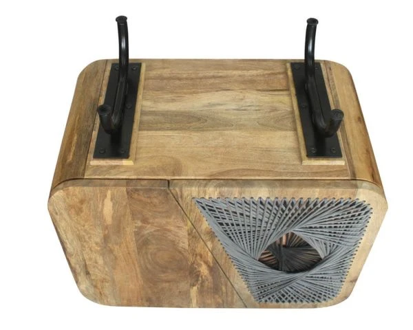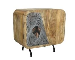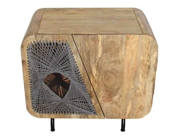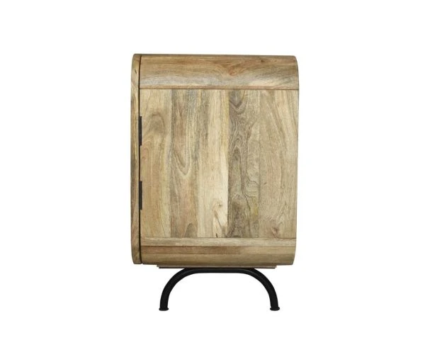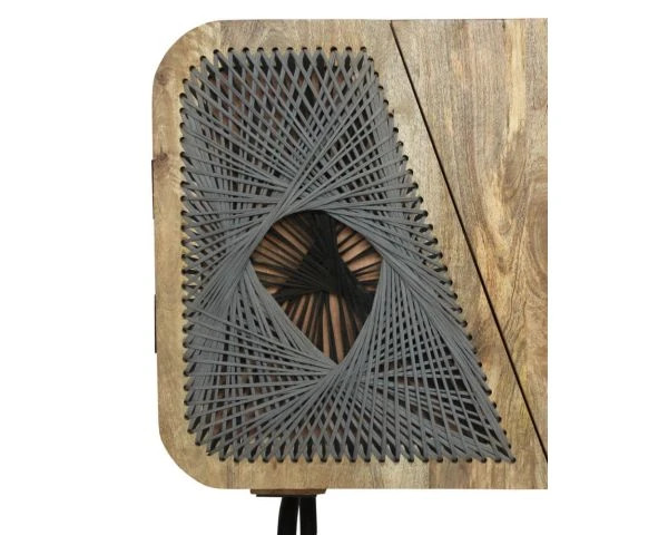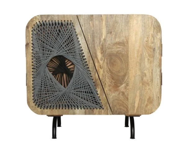 Rendez votre intérieur plus authentique et plus chaleureux grâce à ce superbe buffet graphique deux portes. Fabriqué à partir de bois de manguier naturel, il laisse exprimer toute sa puissance décorative. Surtout que celle-ci est accentuée par des pieds noirs sobres en métal, un jeu de cordage original et une découpe arrondie à chaque extrémité.