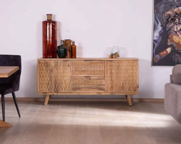 Avec son décor sculpté, le buffet en bois « Zill » possède ce petit twist qui fera toute la différence !