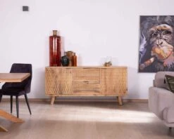 Avec son allure vintage et ethnique, le buffet est l’atout charme de votre salle à manger. Dans un intérieur mariant plantes volubiles et matières naturelles, il sera un meuble en parfaite adéquation avec votre décoration d’intérieure. Réalisé patiemment à la main il est vraiment sublime. Ses délicates poignées en métal se fondent au décor et à l’aspect chaleureux du bois de manguier.