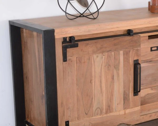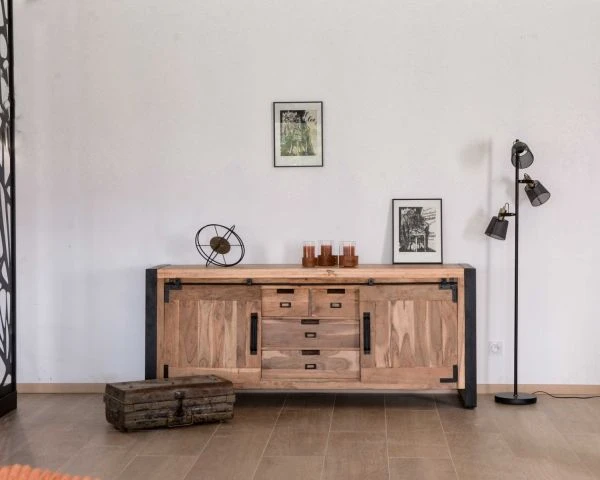 Quand la praticité se conjugue à l’esthétisme, c’est tout ce qu’on apprécie et les grandes enfilades l’ont bien compris… Le buffet ou bahut bas insuffle un vent de légèreté dans nos intérieurs en laissant filer la lumière naturelle qui en profite pour sublimer son bois. Et ici, il est question de bois d’acacia massif ! Avec son toucher velours, sa richesse chromatique et sa fibre ferme le tout idéalement ponctué de métal noir, ce superbe bois magnifie votre espace de vie.
