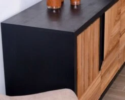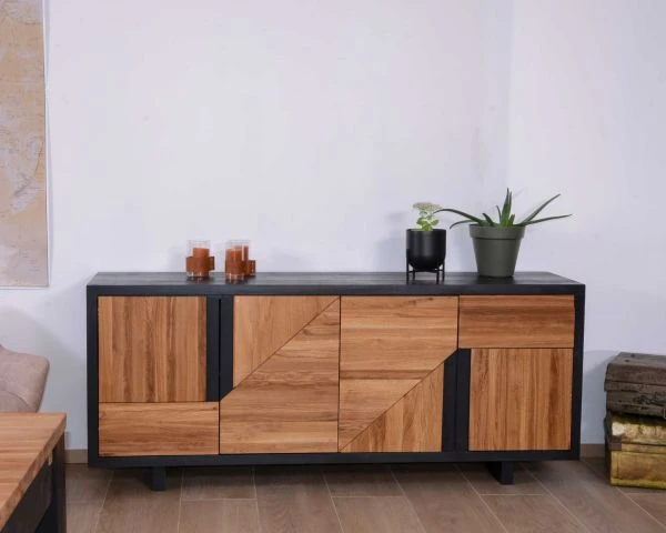 Mixant avec habilité deux bois massifs, le bahut 4 portes 1 tiroir « Flix » se farde d’une teinte naturelle et d’un coloris noir. Avec élégance et efficacité, les couleurs se mixent pour vous subjuguer. Le pin massif teinté foncé fait magnifiquement ressortir la nuance traditionnelle du chêne huilé.