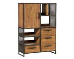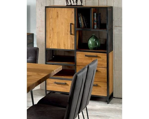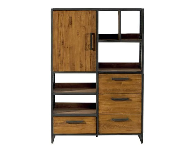 Les amateurs du style industriel seront ravis grâce à l’acquisition de ce superbe meuble. Doté d’une structure en fer vieilli, le buffet haut de la collection « Athéna » en teck naturel recyclé mettra en valeur vos plus beaux objets de décoration et vous apportera de nombreux espaces de rangement. Pourvue d’une porte fermée sur une étagère, de 5 niches et de 4 tiroirs montés sur rails, vous aurez suffisamment de modules de stockage pour laisser place nette dans votre séjour. Verres à apéritif, livres, jeux de société… tout sera parfaitement ordonné.