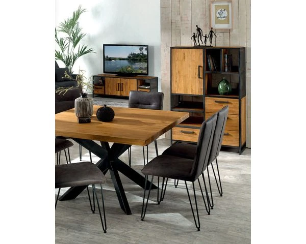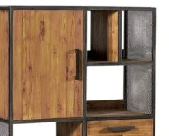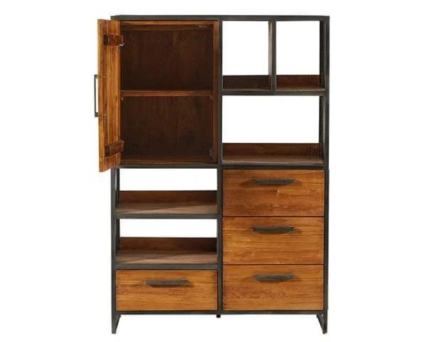 Votre nouveau meuble en teck et fer vieilli trouvera aussi parfaitement sa place dans votre salle à manger pour servir de vaisselier ou dans votre bureau pour faire office de bibliothèque. Vos cadres photos préférés seront mis en valeur dans les compartiments de droite tandis que vos dossiers administratifs seront rangés à l’abri des regards indiscrets.