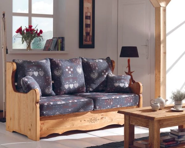 Votre nouveau canapé 2 places dispose d’une structure en bois massif. Patiné et ciré avec le plus grand soin, il donnera une ambiance douce et chaleureuse à votre salon. Avec ses formes arrondies et son décor floral sculpté, il vous emmène directement dans les alpages suisses !