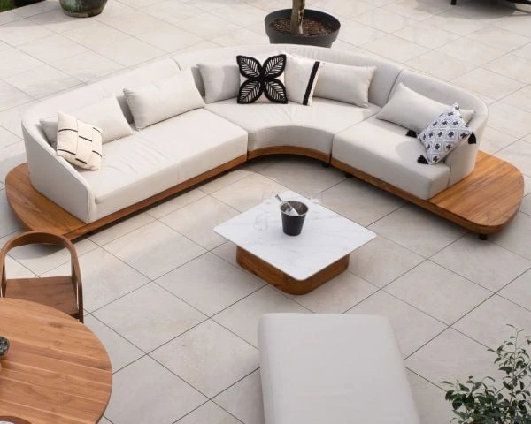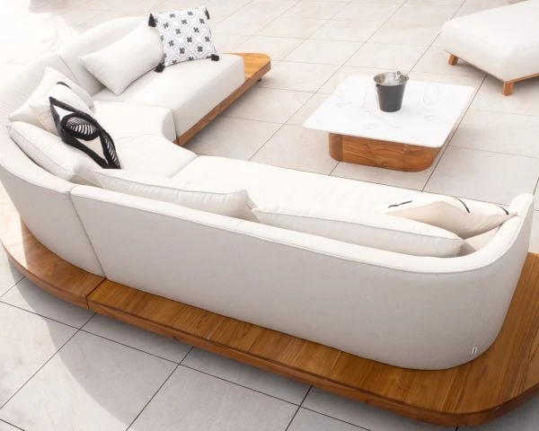 Les matériaux haut de gamme utilisés dans la fabrication de votre salon d’angle sont parfaitement adaptés à l’usage en extérieur pour vous garantir une durabilité d’exception. Le bois de teck est naturellement solide et imputrescible, l’aluminium des pieds est traité anti-corrosion, le tissu Sunbrella® et la mousse QuickDry® sont des matériaux de qualité issus du milieu maritime.