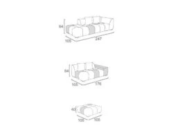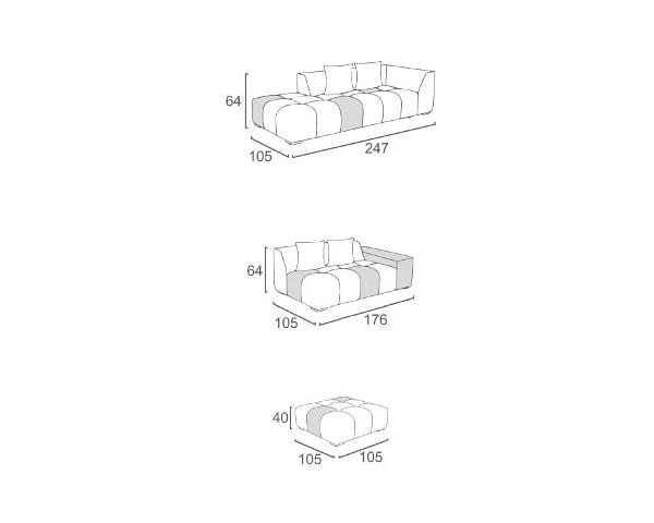 Long. : 247 cm – Prof. : 105 cm – Haut. : 64 cm – Env. 30 kg