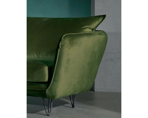 Revêtu d’un tissu au toucher velours, le grand canapé « Hasting» est assez audacieux. Ses lignes vintages et ses pieds originaux en métal lui confèrent une allure folle sans pour autant oublier la notion de confort… En parlant de confort, votre nouveau canapé en tissu repose sur une structure en pin massif et dispose d’un rembourrage en mousse haute densité. Le tout pour vous offrir un maintien optimal au quotidien. Il est important de savoir qu’une assise de fauteuil ou de canapé doit idéalement être garnie d’une mousse à la densité de 30 à 35 kg/m3. La bonne tenue dans le temps de votre meuble sera ainsi assurée et vous pourrez en profiter plus longtemps. Détente et confort seront au rendez-vous pendant de longues années grâce à votre nouveau canapé « Hasting » !