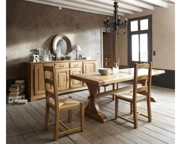 Celle-ci est assemblée par tenons et tourillons de façon 100% traditionnelle. Le chêne est doré semi-antiquaire avec une finition cirée à la main.
