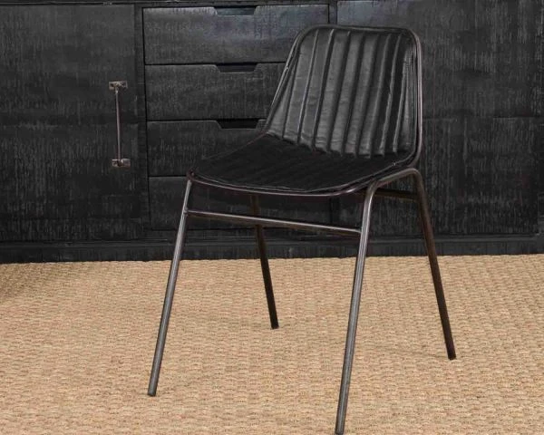 Cette chaise de la collection « Rétro » en cuir noir vintage surpiqué possède un look très tendance et s’accommode parfaitement avec de nombreux styles de déco. Que vous possédiez une table en bois massif, noire ou laquée et qu’elle soit ronde, carrée ou rectangle, cette chaise sera parfaite pour l’accompagner et vous évitera la faute de gout.