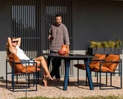 Profitez de toute l’ergonomie de cette chaise de jardin pour lire votre journal ou pour profiter d’un savoureux repas idéalement installé(e). Cette très belle chaise outdoor en aluminium anthracite et tissu aspect cuir camel de la marque française Sunbrella® donnera de la classe à votre terrasse grâce à son allure design rétro.