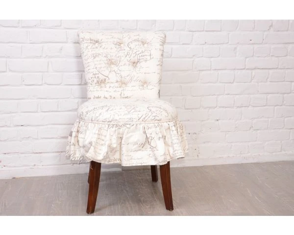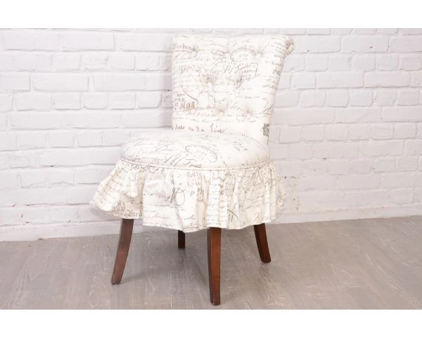 Cette chaise possède un volant en tissu très coquet. Avec son assise moelleuse et son dossier capitonné, vous allez apprécier le confort qu’elle vous offre. Elle ira parfaitement dans un intérieur chaleureux et raffiné. Dans un univers shabby chic, elle sera du plus bel effet.
