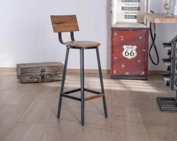 Pratique et porteuse de personnalité, la chaise de bar en acacia et métal noir contribue à votre décoration tout en vous accompagnant au quotidien. Elle trouvera une place naturelle au côté d’un mange-debout de style industriel tout en métal ou d’une table haute style bistrot à l’épais plateau en bois d’acacia.