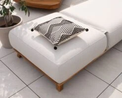 Matières : Tissu Sunbrella® blanc cassé, garnissage mousse QuickDry, structure et pieds en teck massif, aluminium