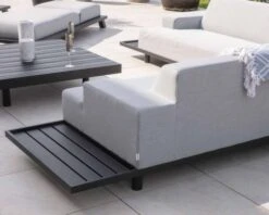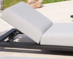 Matières : Tissu Sunbrella® gris clair, garnissage mousse QuickDry, structure et pieds en aluminium noir