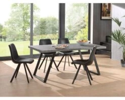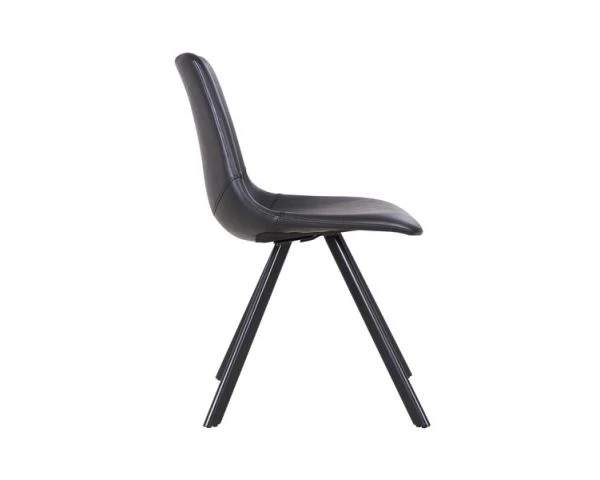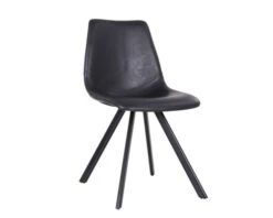 Chaise noire de style nordique avec son pied en métal noir. Il est évasé pour bien stabiliser le siège. L’assise est en PU imitation cuir vintage de couleur noire avec des finitions soignées.