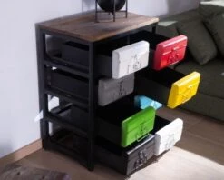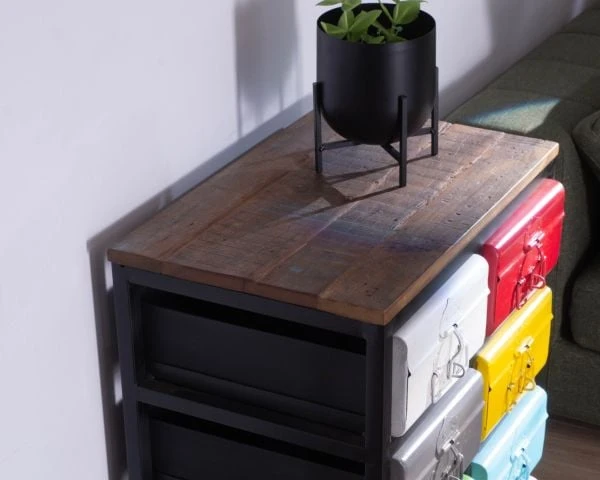 Vous recherchez un chiffonnier à tiroirs à l’allure factory et pleine de peps ? Un petit meuble de rangement d’appoint pour votre bureau ou votre entrée ? Ne bougez plus, vous êtes au bon endroit !