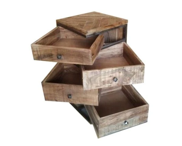 Ses tiroirs s’ouvrent de côté grâce au système de charnières donnant ainsi un véritable cachet au meuble ! Même les poignées sont stylées et élégantes. On ne voit pas ça partout c’est certain ! Enfin, les tiroirs boisés et le plateau en acacia massif apportent chaleur et douceur naturelle à votre nouveau meuble de rangement. A noter que les artisans aiment travailler cette essence de bois durable pour la qualité incomparable de sa fibre ferme et fine résistante à l’humidité. Votre meuble est quasiment imputrescible et ne nécessitera pas de traitement particulier. Pour son entretien, rien de plus simple ! Un facile nettoyage avec un chiffon doux et le tour est joué ! Pratique et fonctionnel, ce petit meuble à tout pour vous séduire et vous faciliter la vie.