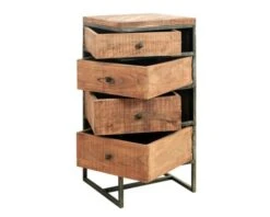 Avec son look industriel et épuré, ce coffre en bois d’acacia et métal « Bronx » sera parfait comme rangement d’appoint. Notre chiffonnier 4 tiroirs en bois exotique est un meuble stable et robuste. Haut de 90 cm, il repose sur un piétement en métal finition brute qui soutiendra parfaitement votre linge ou tout ce que vous aurez pu stocké dans ses modules. Tout sera parfaitement à l’abri de la poussière ou des regards indiscrets…