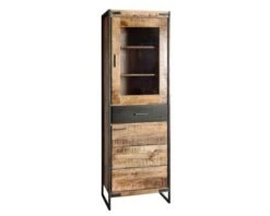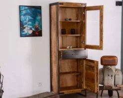 Avec sa parte haute vitrée renfermant 2 étagères, son tiroir et son compartiment bas fermé, ce meuble en bois et métal a tout bon. On l’image aussi bien dans la salle de bain comme meuble de rangement qu’au salon ou dans cuisine comme buffet haut ou vitrine. Au bureau, il trouve aussi toute sa place et n’oublions pas votre nouvelle véranda qui mérite aussi d’être parée de mobilier ultra stylé !