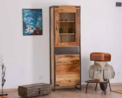 Conçu dans des matériaux solides, ce meuble bicolore attire tous les regards. On aime la nuance grise qui tranche avec les teintes miels du bois de manguier. Variés et ponctués de stries fines plus foncées, les coloris du manguier sont uniques et chaleureux. 100% naturel, le bois ici utilisé resplendit dans votre loft en illuminant votre pièce de vie. Il vous invite à l’exotisme et s’installe facilement dans n’importe quel espace. Livré déjà assemblé, ce meuble de 190 x 63 x 40 cm (hauteur x largeur x profondeur), il convient aux petits comme aux grands espaces. Réalisé dans le souci du détail et très qualitatif, il profite d’un charme fou qui le rend remarquable. Fabriqué en bois massif, il vous accompagnera de nombreuses années et mettra toujours en valeur vos objets précieux grâce à son vitrage supérieur. Vous permettant d’organiser facilement vos affaires, il pourra aussi bien servir pour ranger des dossiers, des livres ou de la vaisselle. Sur le haut de caisson, n’hésitez pas à apporter une touche de verdure en installant un lierre panaché ou une plante retombante.