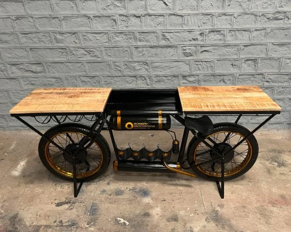 Mettez un point d’honneur à décorer votre intérieur de manière originale. Avec ce meuble mariant bois massif de manguier et moto recyclée vous avez tout bon pour marquer les esprits.