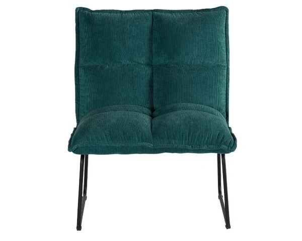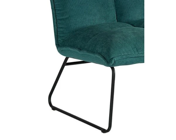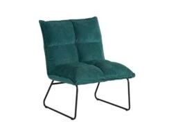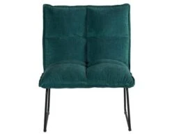 Fauteuils en métal noir et tissu 100% polyester bleu aspect côtelé et matelassé.