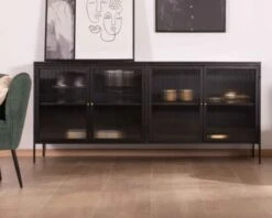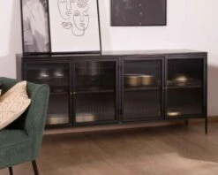 Terriblement tendance ce buffet bas 4 portes est d’une élégance folle. Avec son style contemporain il s’inscrit dans un design incomparable. On adore aussi sa touche vintage assuré par l’emploi du verre cannelé.