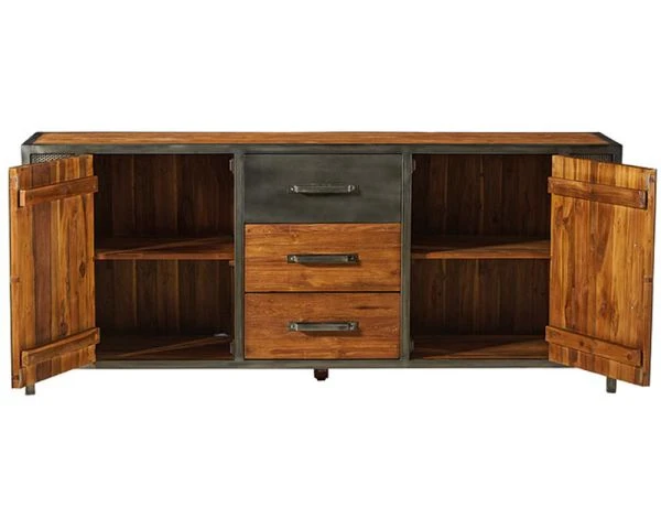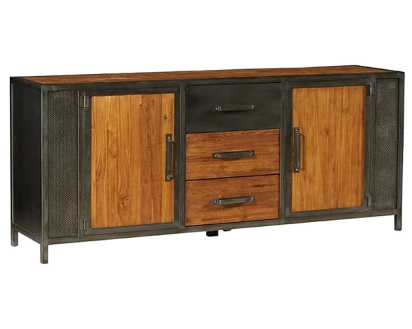 Avec son look factory, son bois exotique recyclé et sa structure en fer vieilli, le buffet bas « Talmo » va séduire à coup sûr les amateurs de déco industrielle.