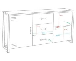 Fonctionnel et doté d’un grand volume de rangement, le bahut de la gamme « New York » est composé de deux portes et de trois tiroirs. Avec tous ses modules, il vous offre un espace de rangement très appréciable. Vaisselle, dossiers administratifs, linge de lit, jeux de société… il y a de quoi faire !