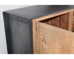 L’armature, les côtés et le plateau de votre nouveau meuble de rangement sont en métal dont la couleur grise tirant sur le noir, se marie parfaitement au bois de manguier. Placées sur les portes et les tiroirs, les poignées ont été fabriquées avec le même métal que la structure. Le tout pour un meuble cohérent et harmonieux. Six fentes ont été taillées dans les portes, trois en haut et trois en bas, pour apporter encore plus de personnalité et de charme au mobilier. Avec son design factory, le buffet « New York » n’est pas sans rappeler les meubles en fer des ateliers d’usine.