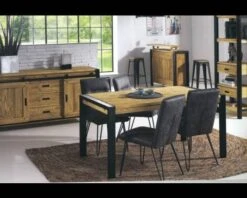 Très beau mobilier dans le pur style industriel en pin massif brossé et métal.