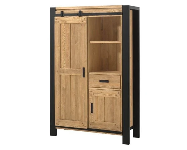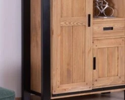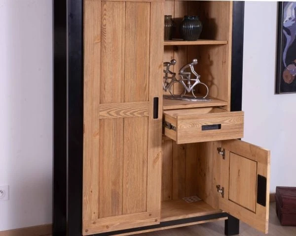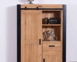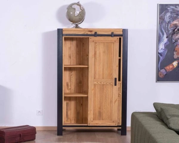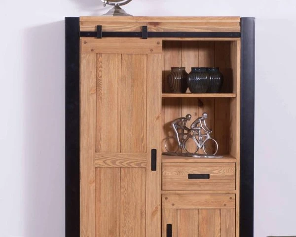 Livré monté, votre meuble sera opérationnel de suite. Vous pourrez le disposer aussi bien dans un séjour que dans une cuisine ou une salle à manger. Conçu en métal et pin massif, il dispose d’une allure chaleureuse. Il sera parfait dans un chalet moderne à la montagne ou dans un appartement plus moderne. Avec son design sobre et ses lignes épurées il a l’avantage de se combiner à de nombreuses atmosphères. On aime la porte coulissante, on admire les finitions de qualité et surtout on profite de ses nombreux volumes de rangement qui nous permettent aussi bien de stocker que de mettre en valeur nos cadres photos ou objets souvenirs préférés. Haut de 160 cm, votre meuble pourra même recevoir une plante retombante comme un lierre panaché sur sa partie supérieure. Une touche de vert et tout de suite, la pièce de vie profite des bonnes ondes de la nature !