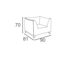 Long. : 90 cm – Prof. : 81 cm – Haut. : 70 cm