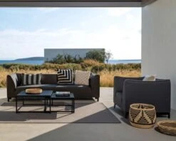 Votre nouveau canapé et ses deux fauteuils terriblement cosy vous attendent pour un moment bien-être au jardin. Placé sur votre terrasse ou dans votre véranda, vous pourrez profiter d’un salon d’extérieur haut de gamme aux finitions soignées. Ses lignes élégantes et sobres sont parées d’un revêtement tissu gris foncé de la marque française Sunbrella® qui accorde à vos meubles une résistance aux UV, à la décoloration et aux moisissures. Déperlante, c’est aussi une matière qui s’entretient très facilement. De plus, dossiers et assises sont garnis d’une mousse respirante à haute densité QuickDry, vous permettant d’être confortablement installés.
