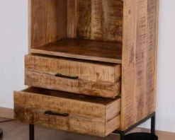 N’attendez plus pour découvrir le meuble de salon dont vous aviez toujours rêvé. A la fois colonne de rangement, étagère et bibliothèque, ce meuble en manguier massif et métal fera le show dans votre intérieur.